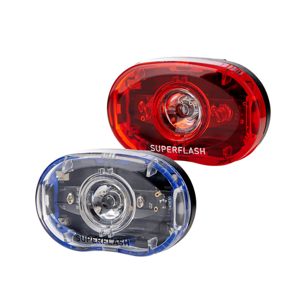 Pathtaker SuperFlash LED lygtesæt giver høj synlighed i trafikken med for- og baglygte i et kompakt, vejrbestandigt design. Lygterne er nemme at montere, har konstant lys eller SuperFlash-blink og er synlige op til 1600 meter med 220° synsvinkel. Baglygten har ekstra lang batteritid, og begge lygter er bygget til brug i al slags vejr.